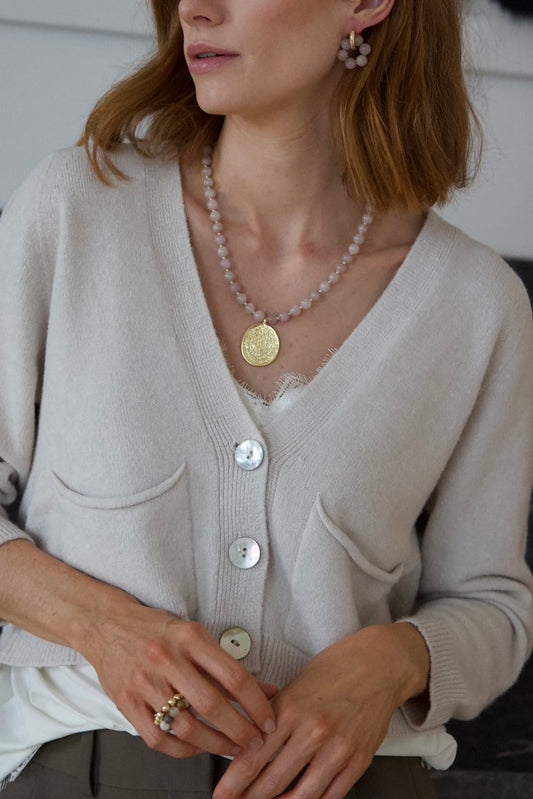 In unseren Kollektionen entdeckst Du einzigartige Schmuckstücke aus hochwertigen Materialien wie Edelsteine und Natursteine, Süßwasserperlen, 925 Sterling Silber, 18K und 24K Vergoldung und Edelstahl.